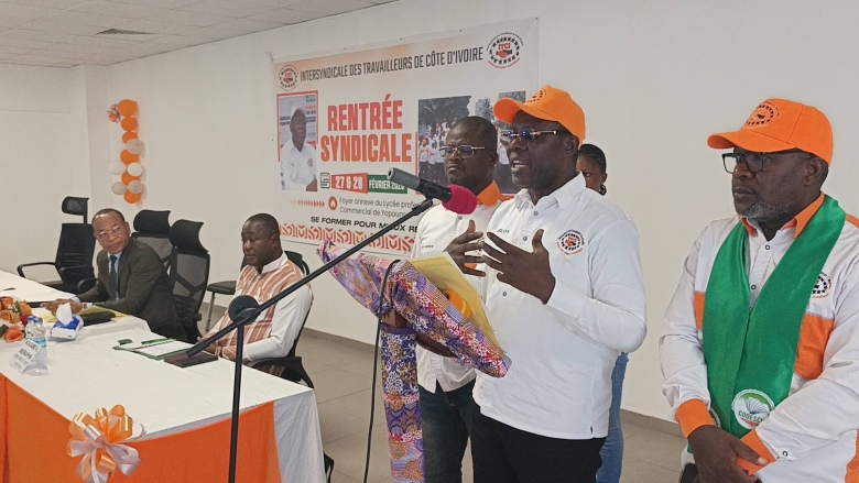 Ce samedi 28 février 2026, s'est tenue la rentrée syndicale de la Centrale Intersyndicale des travailleurs de Côte d'Ivoire (ITCI) à Yopougon. Une cérémonie d’ouverture qui a eu lieu dans un contexte marqué par la question de la prime d'incitation en faveur de certains fonctionnaires. Mais aussi par les prochaines élections à la Mutuelle générale des fonctionnaires de Côte d’Ivoire (MUGEFCI). L’occasion pour Jean-Yves Abonga, président de la centrale ITCI, de donner la position de sa faitière sur ces différents points. Parlant de la MUGEFCI, M. Abonga a surtout insisté sur l’unité.