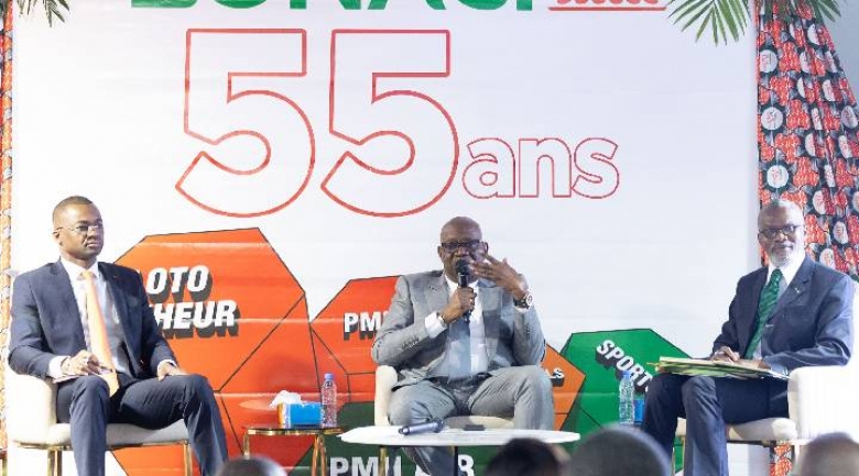Deux mois de bonheur ! C’est ce qu’offre aux Ivoiriens, la Loterie nationale de Côte d’Ivoire (LONACI), pour célébrer ces 55 ans d’existence. Mardi 28 avril, au cours d’une conférence de presse animée aux studios à Bietry, le Directeur général de la LONACI, Dramane Coulibaly, a annoncé le lancement officiel de ces festivités. C’était en présence de Karim Ouattara, le directeur général adjoint. Ce sera pour ce jeudi au Sofitel Abidjan Hôtel Ivoire. Pendant 60 jours, il y aura des rencontres d’échanges. Des émissions spectacles, une « caravane bonheur », des journées portes-ouvertes, une cérémonie de distinction du personnel, un diner gala, etc. La LONACI prévoit également le lancement du jeu de tirage au sort, dénommé Kadolo. Selon Dramane Coulibaly, ce 55ème anniversaire sera d’autant plus importante que la LONACI a réalisé depuis 2012 une croissance fulgurante.